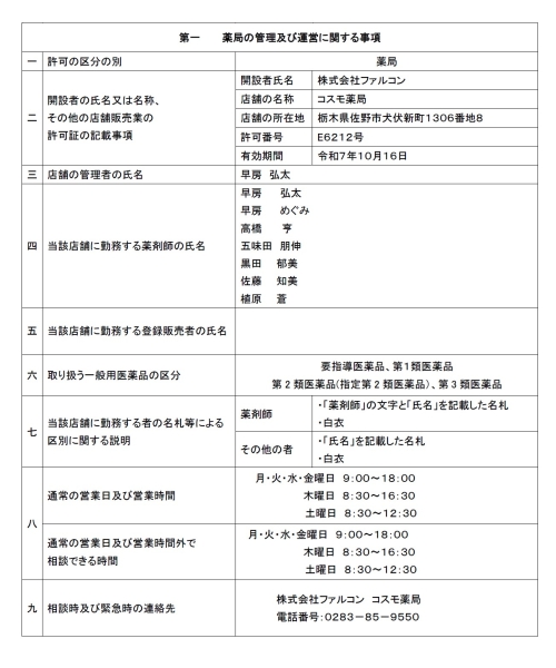 休⽇、夜間を含む薬局における調剤・相談応需体制等の対応